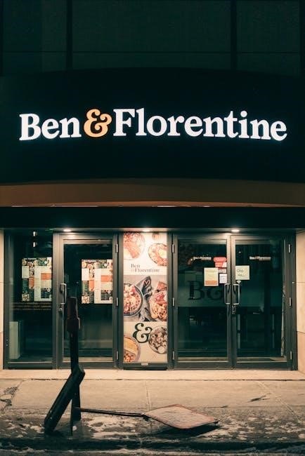The menu emphasizes a commitment to generous portions and high-quality ingredients, ensuring each poutine is a substantial and delicious meal. The online version replicates the PDF’s clarity, offering convenient access to the full range of options. Expect a diverse selection catering to various tastes, solidifying Ben & Florentine’s reputation for delivering a “full-on feast.” The PDF serves as a valuable resource for exploring the extensive poutine offerings and making informed selections.